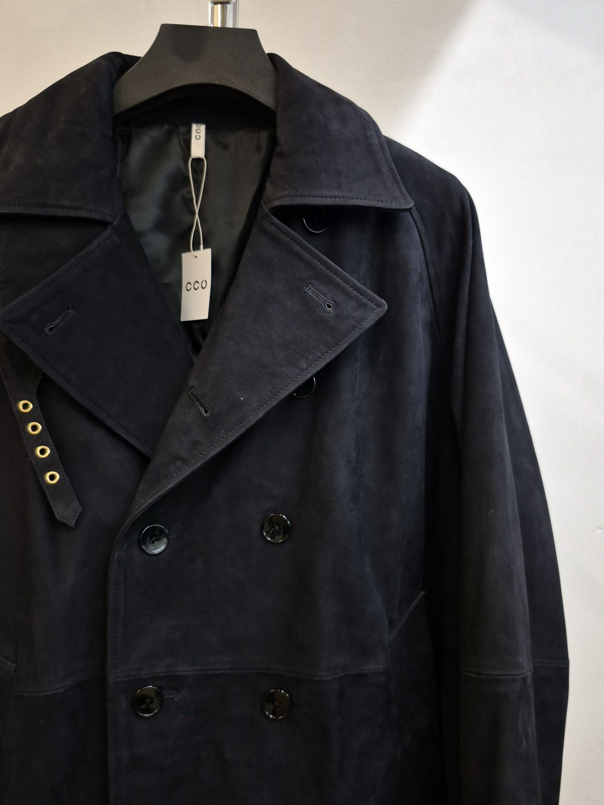 CCU LEATHER DOUBLE BREASTED HALF COAT SH-60-C-NUBCK-3 NAVYSold out