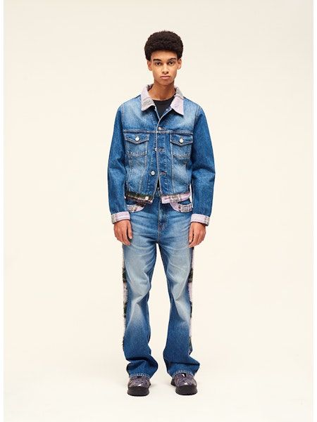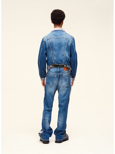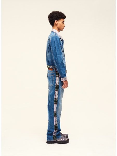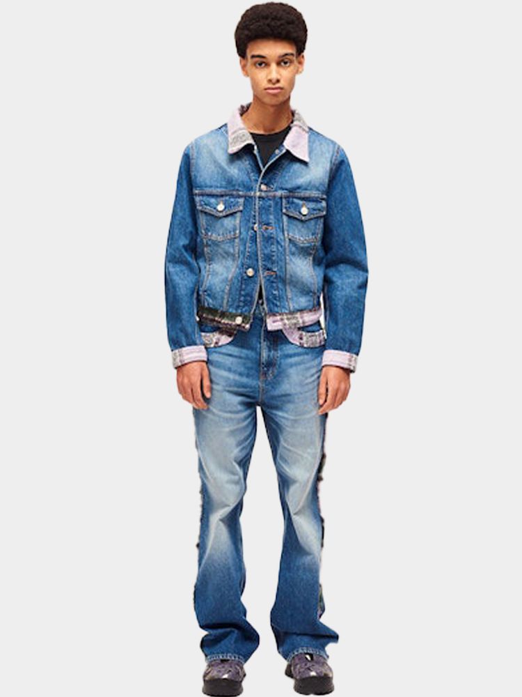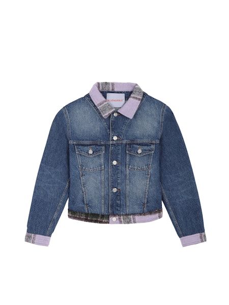 Denim jacket with tartan details Blue