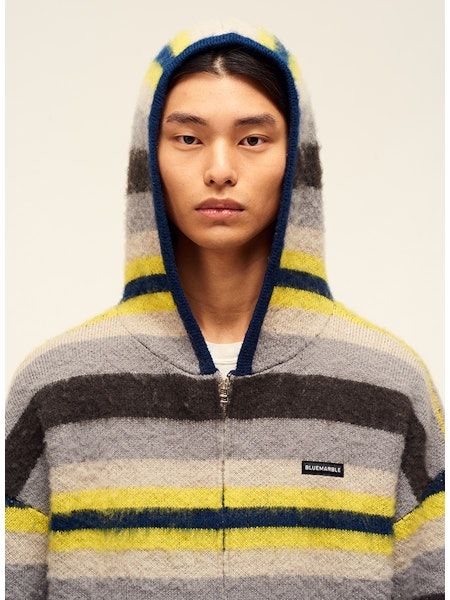 Zipped knitted hoodie Yellow