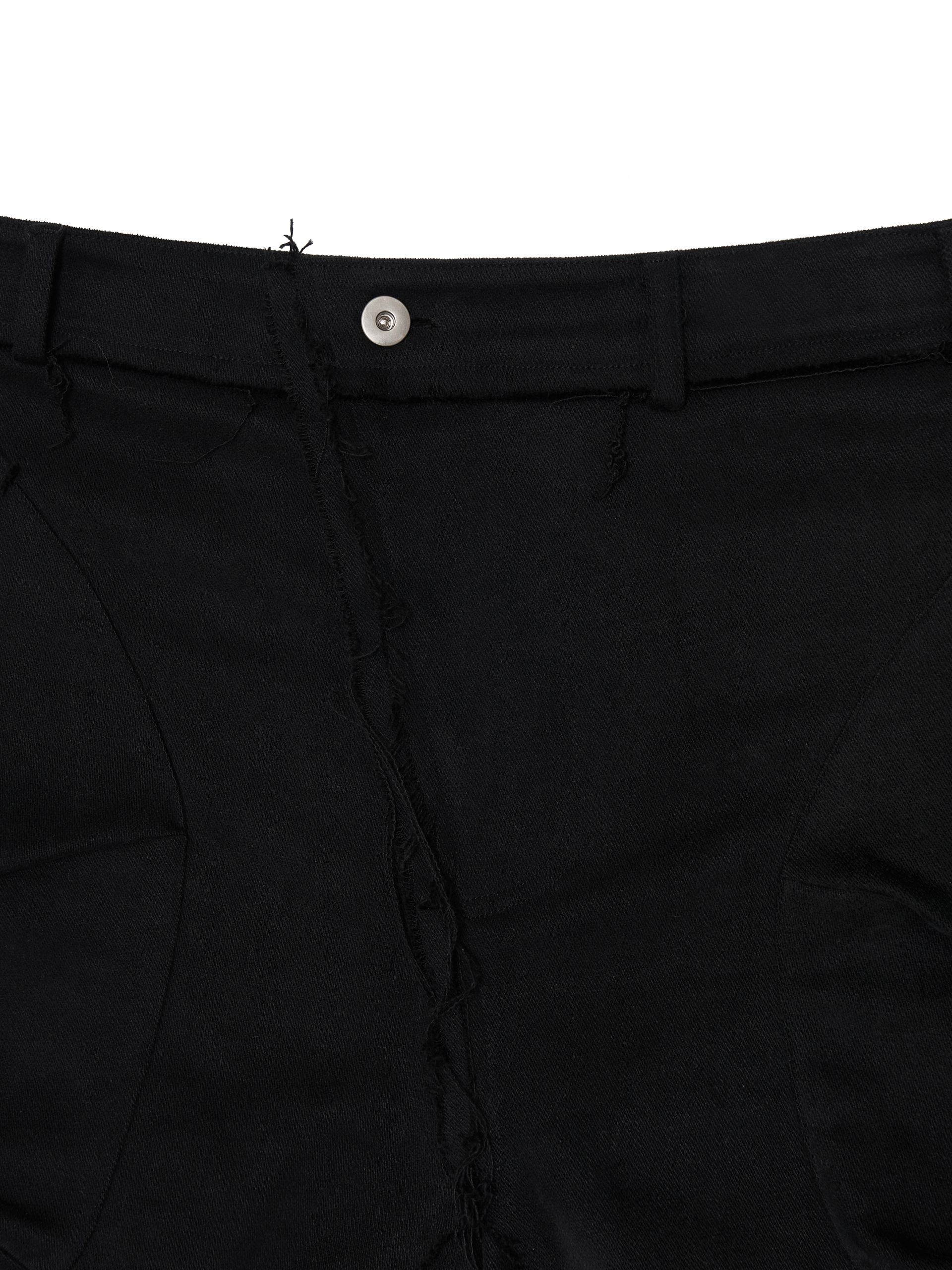 * Rough-cut finishing applied throughout the waist belt line and leg seams.